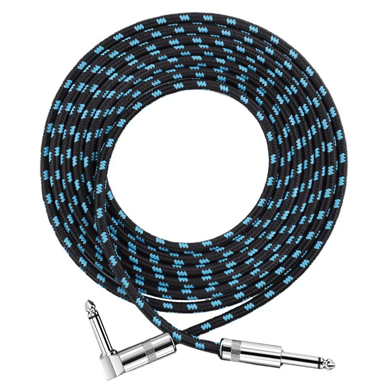 Electric Guitar Cable Braided 1/4 ft Jack 90 Degree TS 6.5mm Audio Mono Cable Bass Electric Box Audio Cable Noise Reduction Cabl