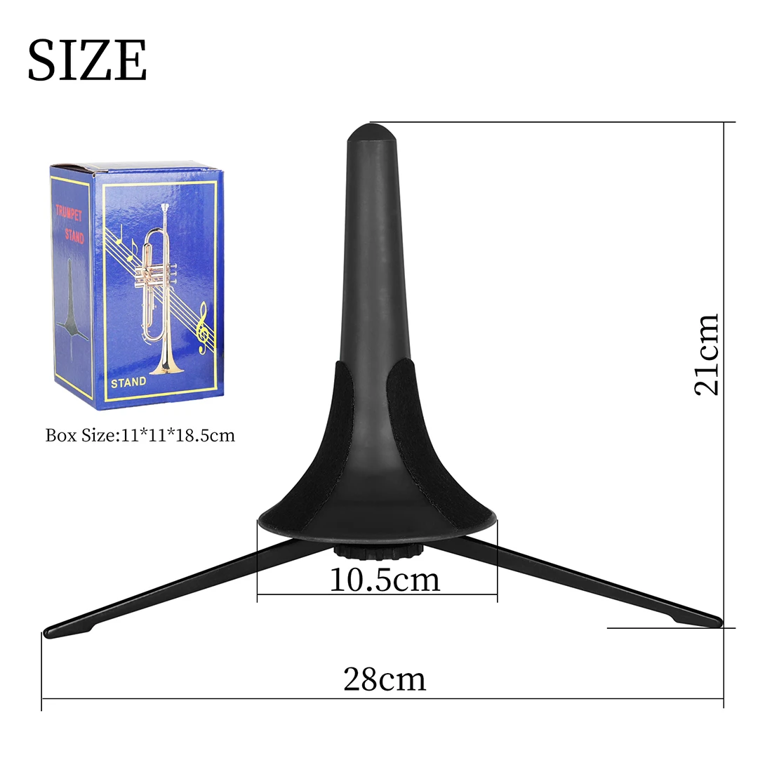 -Black trumpet tripod with felt pad to protect the instrument from scratches.
